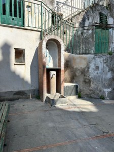 We made our first stop Buca di Bacco Bar (https://www.bucapositano.it/american-bar). It was located right in the center, a 5 minute walk from the ferry and a great spot to people watch. The drinks were delicious (Mojitos, Aperol Spritz, Margaritas were what we got) and they brought lots of little snacks to the table…thank you! Because we were patrons we were given tokens to use the bathroom..it was located up an alley and through a turnstile, but it was airconditioned (and clean), which was wonderful on a 90 degree day.