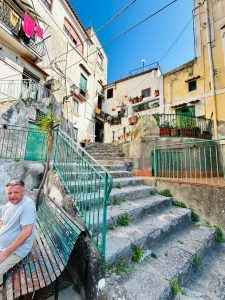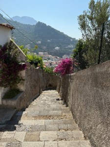 Once back from the beach some of us decided that we would take the ambitious (also referred to as stupid) walk from Minori to the mountaintop town of Ravello (https://www.ravello.com/). The funny thing is, this is also referred to as The Path of Lemons to some. We had heard that it was about 1500 steps, but hey, we were leaving early enough (9:30 am), so the summer heat would be no big deal and we are all in relatively decent shape. Or so we thought. The journey ahead I would refer to as the hike of “Sweats & Swears and eventually Cheers!”