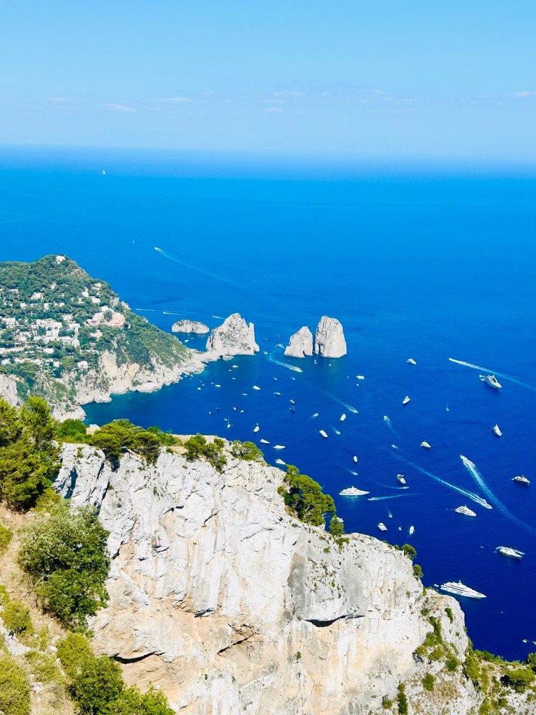 We knew we had about 8 hours on the island so we did have a plan. We decided to book a boat tour around the island through Precious Cruises https://www.capriprecious.com/. We booked the 3 hour cruise at a cost of €630, which ended up being about €57 per person. We thought it was so well worth it! Our cruise was scheduled for 11:00 am, but apparently our boat Captain Michelle, was stopped by the Coast Guard, which apparently this happens often. We didn’t head out until about 11:45, but Michelle made up for it and kept us out an extra half hour. It screwed us up a bit with our time schedule, but in the end worked out just fine!