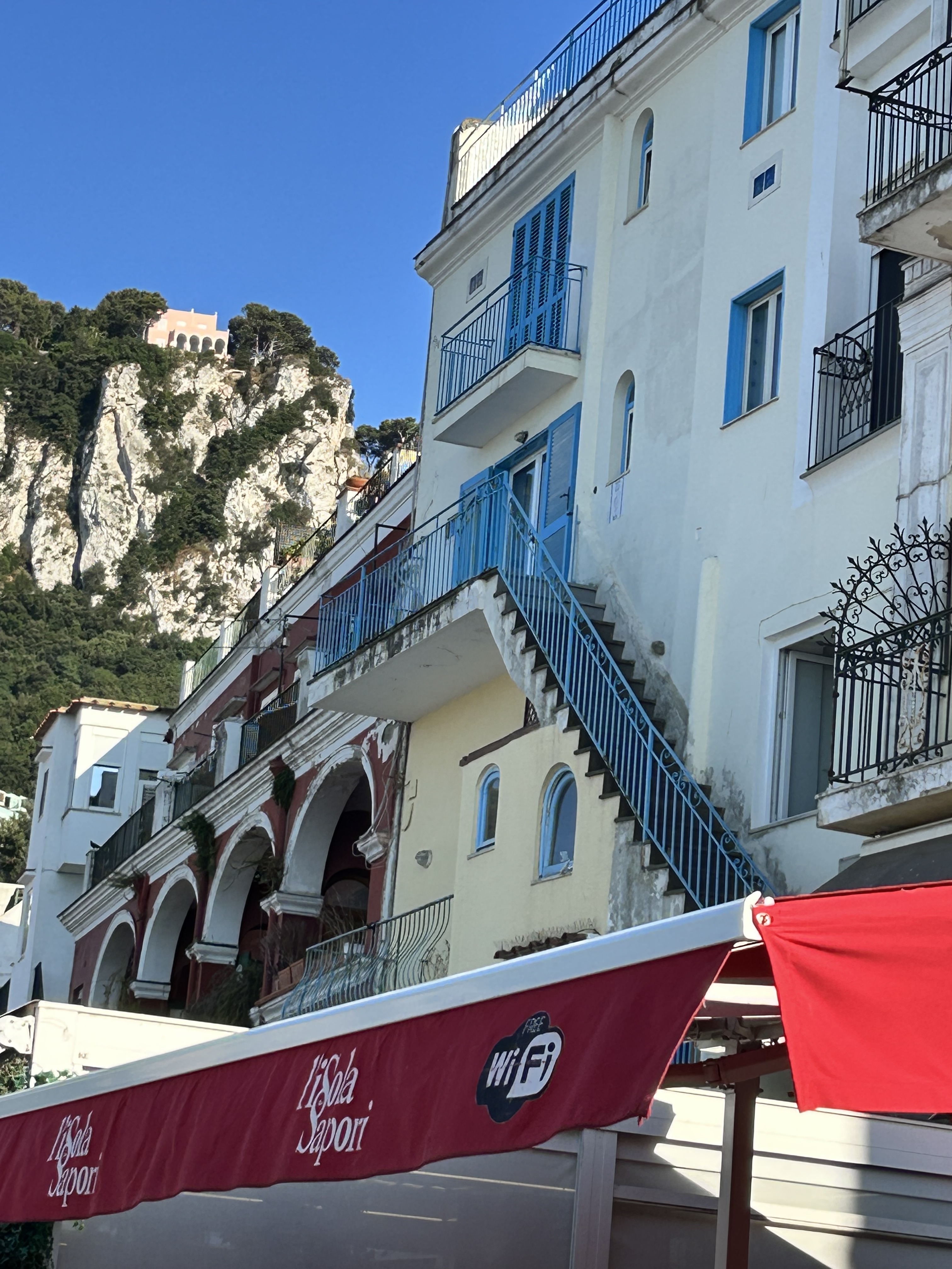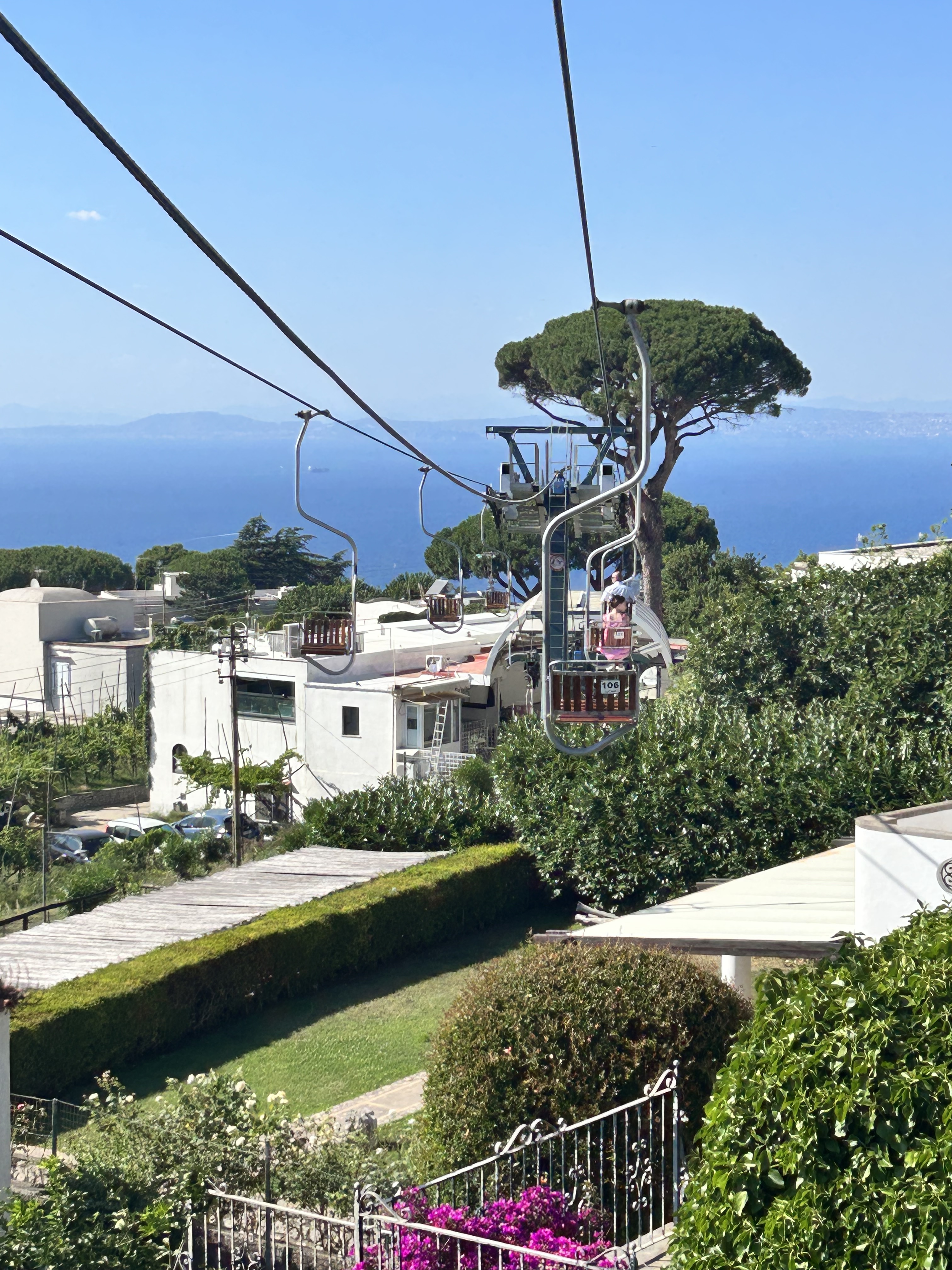 The bus dropped us in the center and it was a 5 minute walk to do the Monte Solaro Chair Lift (https://www.capriseggiovia.it/). Okay, so I was so leery about going on the Chairlift. I am scared of heights and went back and forth about whether I could do it without passing out. When my 11 year old niece got her ticket, I said screw it! The ride to the top and back was €14 and worth every dime! We purchased right there on the spot, so no need to do it beforehand. I kept thinking that I would possibly miss the chair as it was going around and fall off, but the men at the bottom made sure that you got on swiftly and easily. The entire ride up was AMAZING. A little squeaky as it went over the wheels attached to the large poles, and I must admit, I closed my eyes a couple times. When we reached the top, there were a bunch of different locations to take pictures of the views from the top of the island. It was absolutely breathtaking and probably the most beautiful views I saw during our entire trip. They had a great little cafe at the top La Canzone Del Cielo, and we all enjoyed some gelato (and beer for some) before jumping back onto the chairlift and heading back down. I had the Pistachio which was really good and they are known for their Lemon cake! The total time we took was about 1 hour.