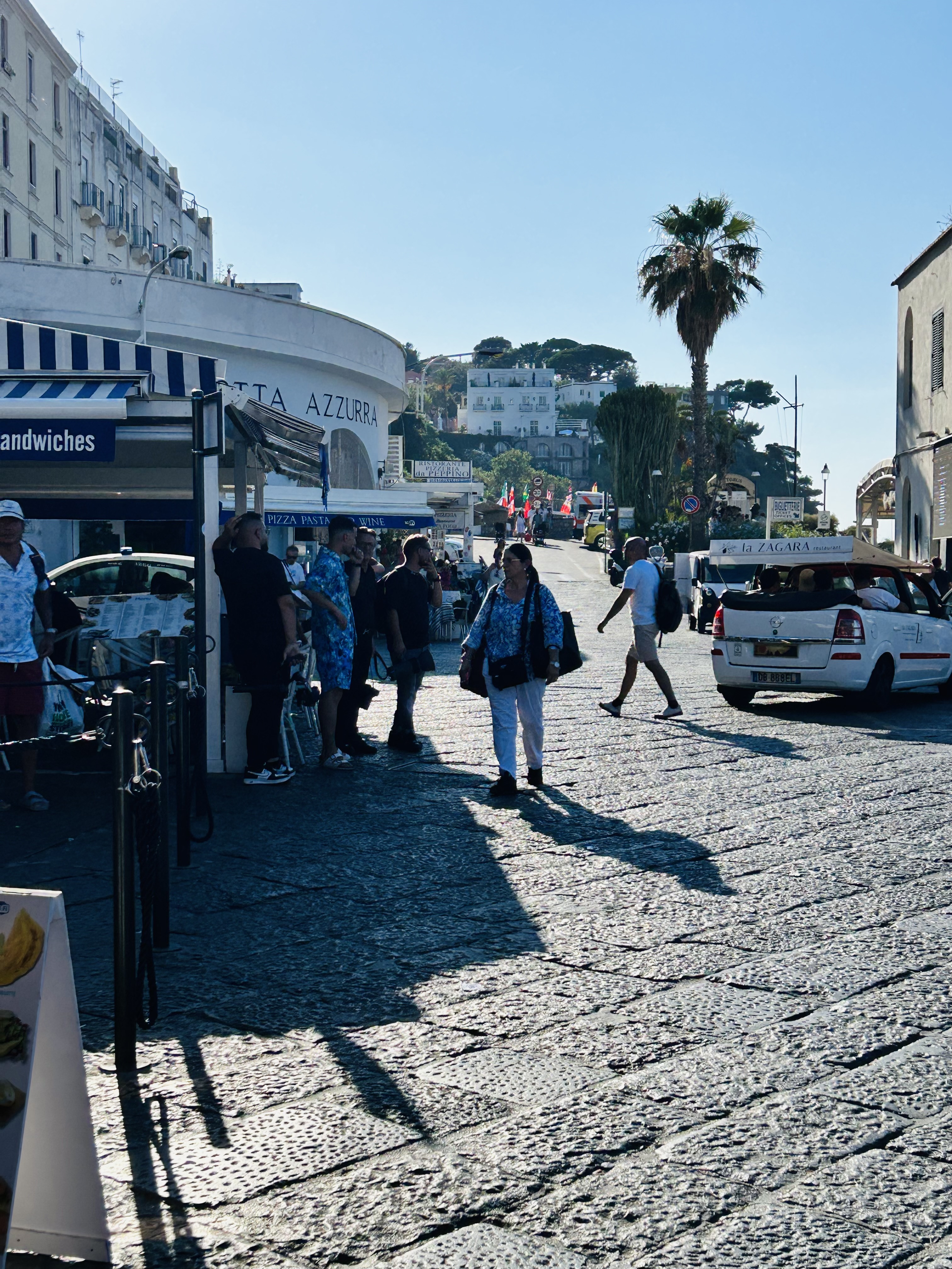 Once we got back to Anacapri, we ventured to Piazza Vittoria, which was a 5 minute walk from the chairlift. Aside from the shops and boutiques, this is a great place for a little people watching! We spent about an hour hereThe prices were definitely a little bit more expensive than merchandise on the “mainland”, but there were a few shops not to be missed in Anacapri! A shop not to miss is Capri Bells (https://www.capribell.it/). They were beautiful and make a perfect gift. They are also known to be good luck (legend below!) We also went to Capri Glam (https://www.instagram.com/capri_glam/) and got aTON of souvenirs for great prices! I got a beautiful makeup bag with lemon all over it for 10 euros. I also got some gifts and other souvenirs: ornaments, a wallet, key chains, mapenes and a few other items I really did not need, but bought anyway! And what a small world… we got to chatting with the owner who asked where we were from and when we told him New Haven area in CT, he shared that he lived on Wooster Street for a few years (across from the famous Pepe’s Pizzeria) and actually spent a few Christmas Eves with friends in the area!