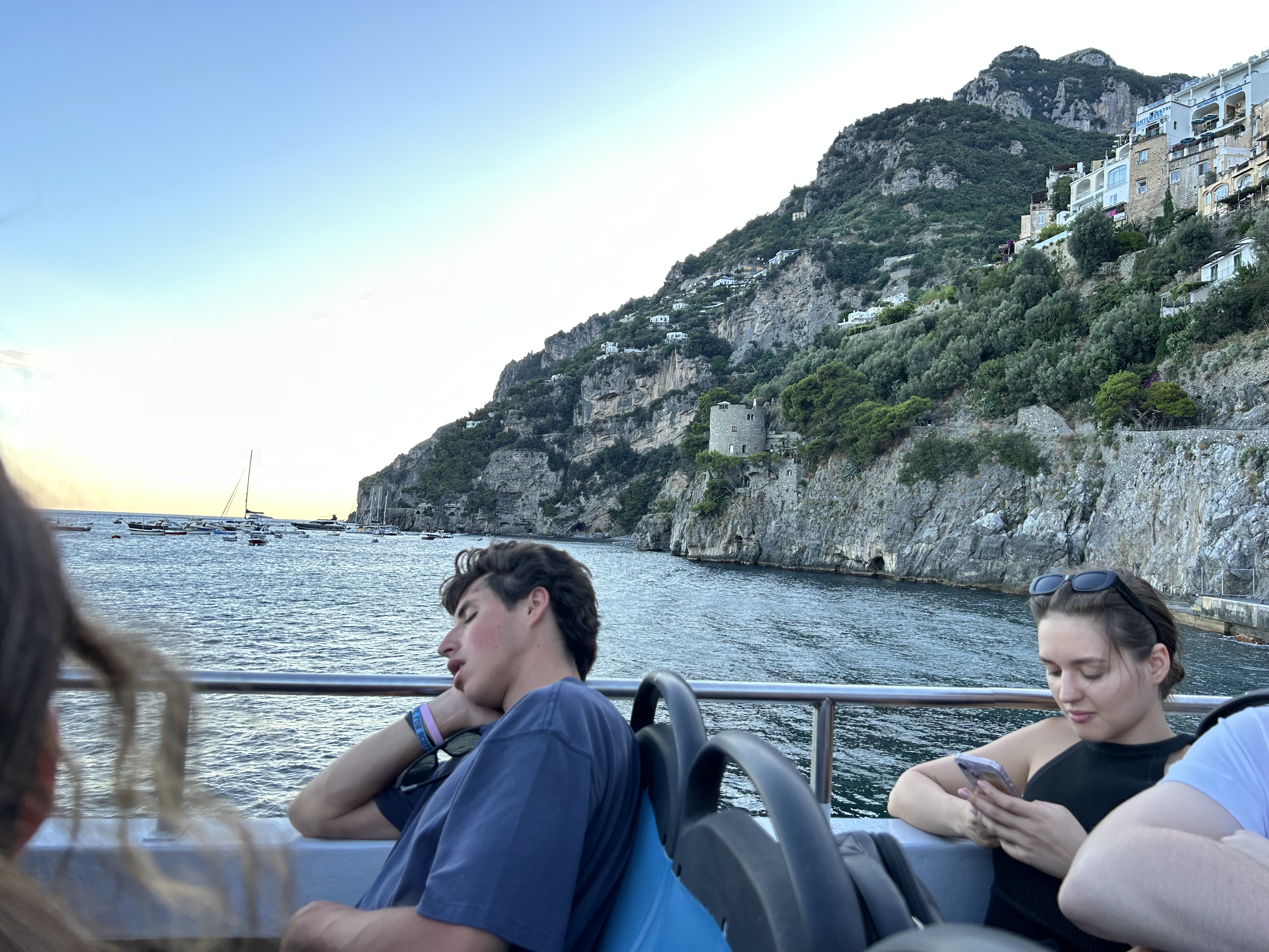 One of the best parts of our boat ride was the opportunities to anchor and swim in the ocean! We spent about a half an hour each at Cala Ventroso (https://wanderlog.com/place/details/10233816/cala-ventroso) and Marina Piccola Bay (https://www.capri.net/en/e/marina-piccola). The water was amazing and a ton of other boats were anchored so there were lots of people swimming and frolicking around. Our specific boat tour offered towels, noodles to use and water and soft drinks. We could have opted for lunch, but we chose to bring our own subs from our little deli in Minori and the boat had a huge cooler to store them in.