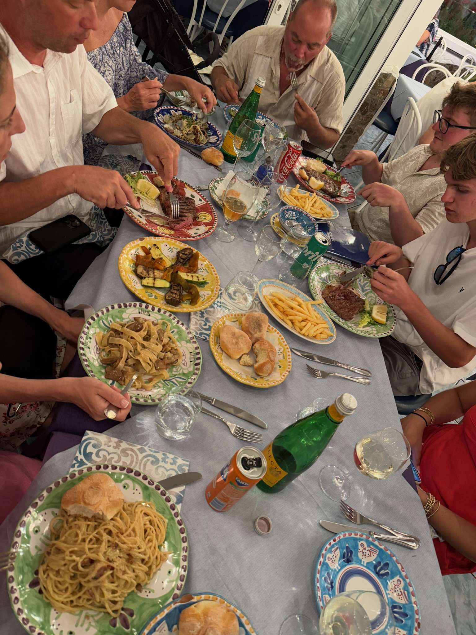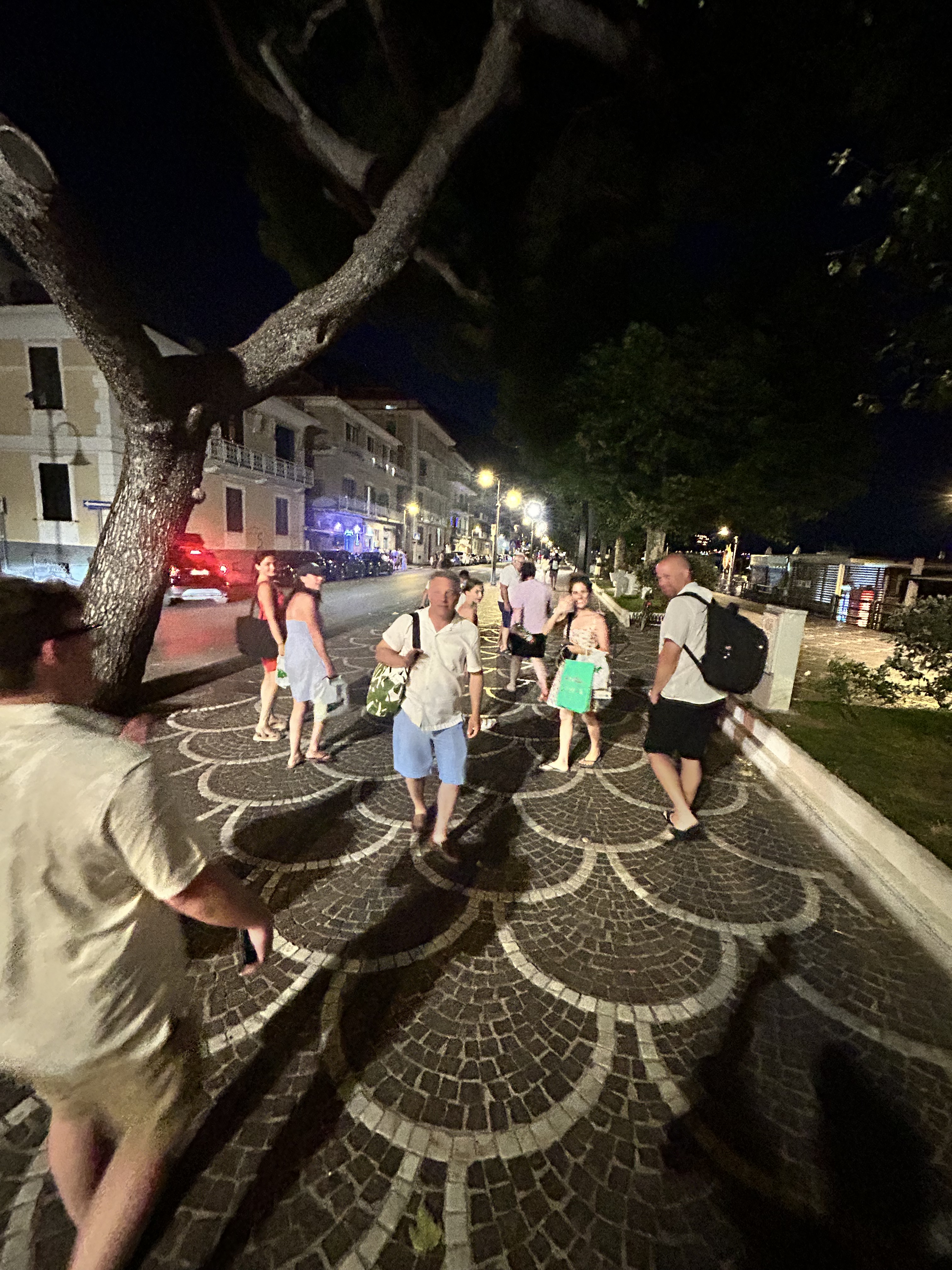 We arrived back in Amalfi around 8 pm and hopped on a bus to Maiori to go to dinner. The ride was just as adventurous as the day before….it’s amazing how skilled the bus drivers of the Amalfi coast are! We chose to have dinner in Maiori and visit the restaurant of a relative of a close family friend of someone in our party (you know, someone’s brother’s, uncle’s, god sister’s cousin… all kidding aside, it was much closer than that and the cousin’s across the world were able to face time). Maiori is just around the bend from Minori on the Amalfi Coast highway. It is a beautiful little town with a festive boardwalk and lots of great little restaurants and cafés! We dined at Ristorante Lavela (http://www.ristorantelavela.it/). The atmosphere was so inviting. It was directly across from the water and had floor to ceiling windows that were open, so there was a beautiful breeze coming in. The service was good, as was the food. The Spaghetti alle Vongole was so tasty! The clams were cutest and the size of a dime. The fresh seafood dishes are highly recommended! We skipped dessert tonight, but were brought a bottle of Limoncello to share. When we were finally done, it was around 11 o’clock and we asked where we could catch a bus back to Minori. The lady literally laughed out loud and said “Not far. You walk.” So that’s what we did…. single file along a skinny little strip of land, up around the bend. I must say the walk was beautiful and as we turned the corner and could see Minori, there were fireworks exploding just along the other edge of town. I must say I am so glad we missed the bus!