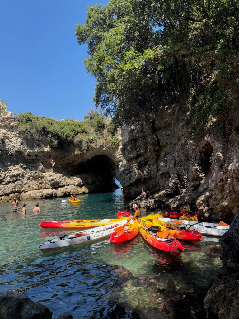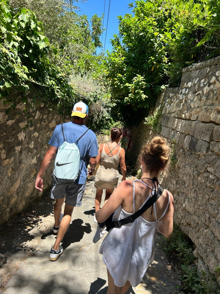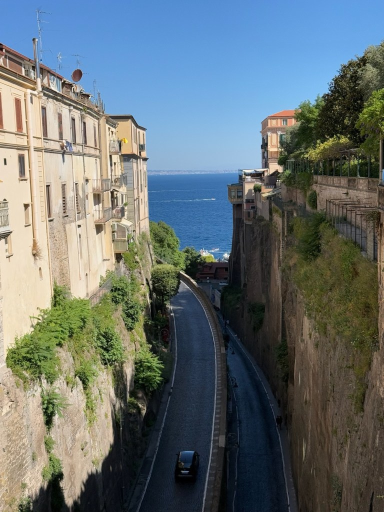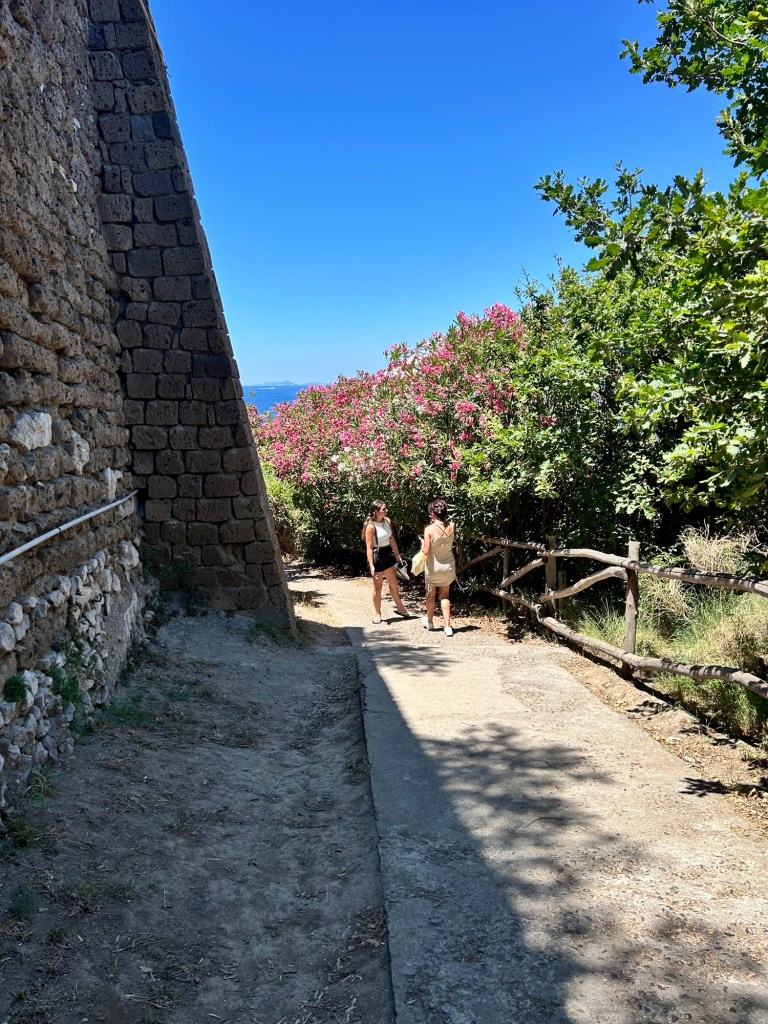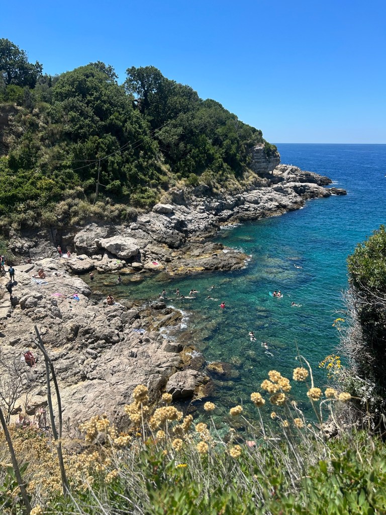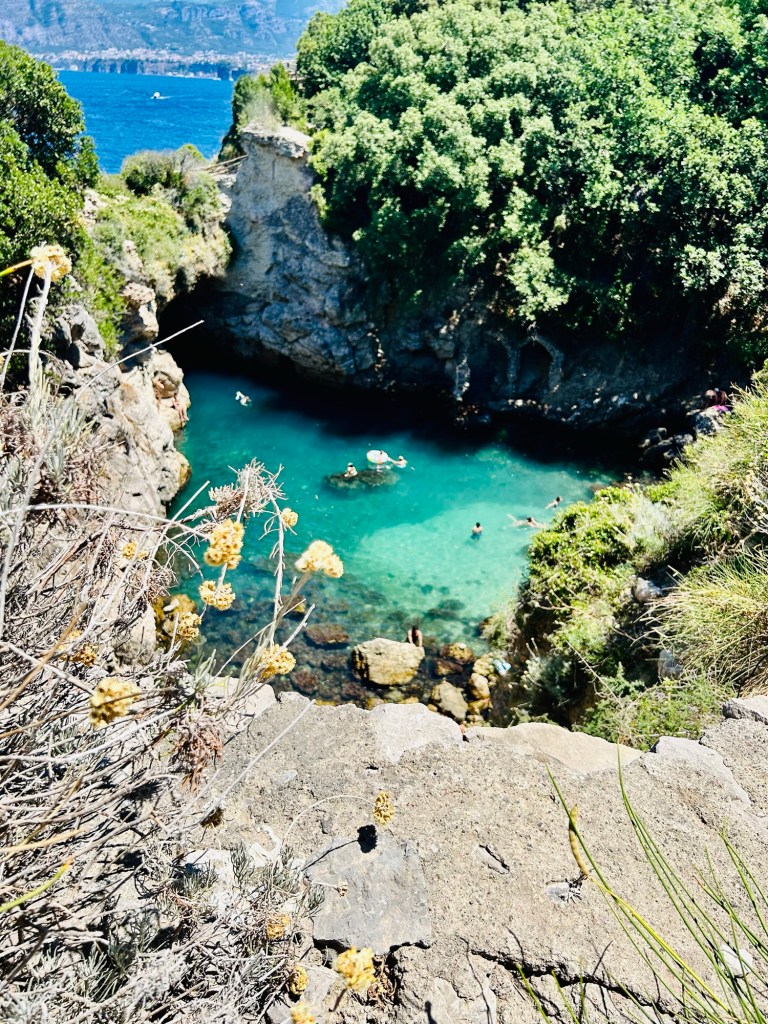 It is located in Punta Capo (https://www.italia.it/en/campania/naples/capo-di-sorrento), which is a section of coastline about 15 minutes from the center. We did have to wait around a bit, as the bus schedules did not really follow what our papers told us, but we learned that Italians kind of roll with the punches and are not bothered in the least by having to wait around. The buses were comfortable and had air conditioning, so that was a plus! To get to this location, the bus drops you off at the top of a big hill that has a little store at the top. Highly recommend grabbing some drinks before heading down, as the walk back up is ALOT and without any drinks we were ready to pass out when we got back to the top.