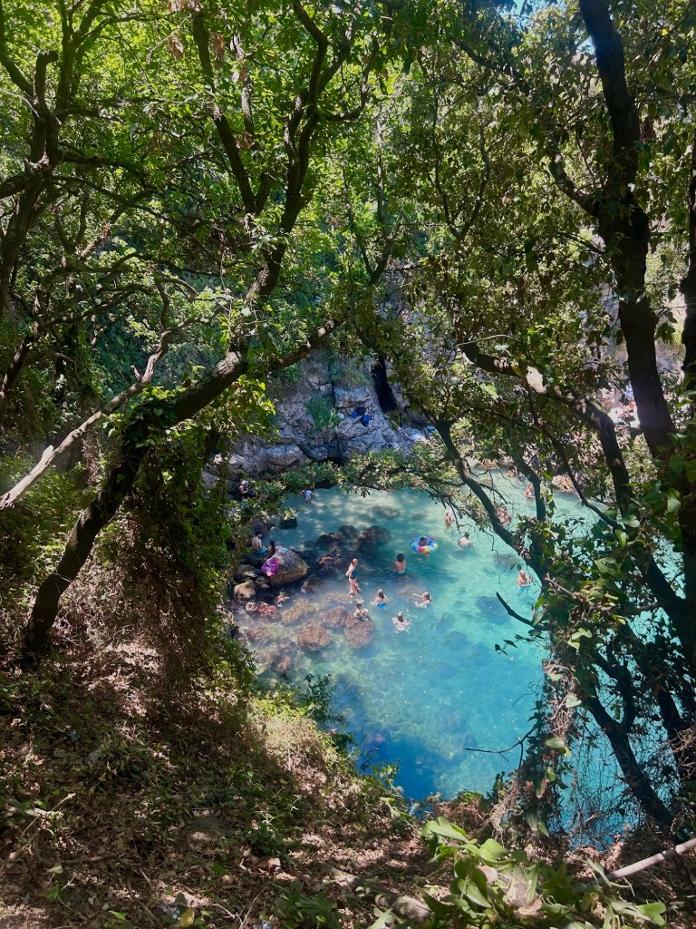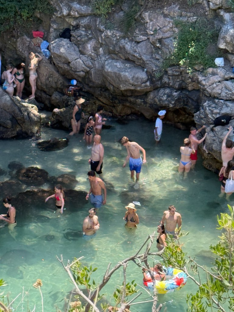 Once we were done eating, the decision was made to take the bus to the Bagni Della Regina Giovanna (https://www.italia.it/en/campania/naples/things-to-do/bagni-regina-giovanna-roman-villa-capo-di-sorrento), which means Queen Joanna‘s Baths. This is a natural pool with teal/light green waters that photos do not even do justice! This is definitely one of the most breathtaking places in Sorrento.