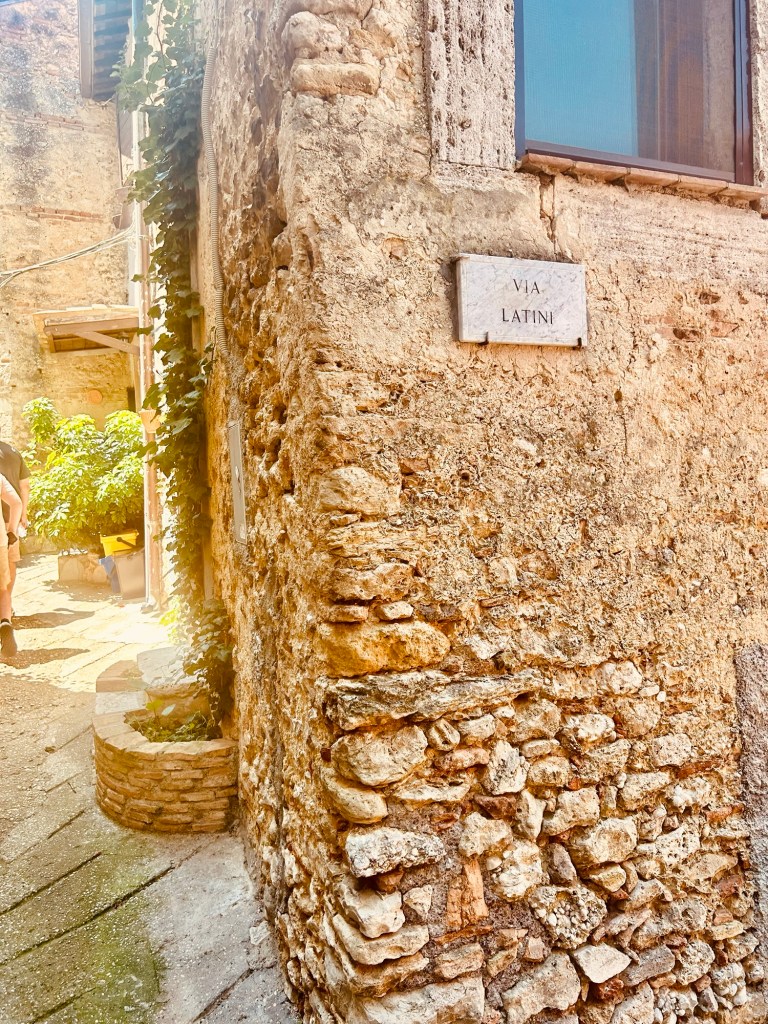 Poggio Nativo, essentially has two parts. “Old Poggio Nativo” is the part of the town set around a medieval castle dating back to the 10th century! It is surrounded by a large wall with many small walkways, steps and alcoves throughout. Only very tiny cars can navigate around this village, most need to walk to their homes. Once we got to the town, we parked just inside the wall in a small parking area. One of the best things for us is we were able to hear all about the history of Poggio Nativo from our cousins as we explored the little streets and alleyways.
