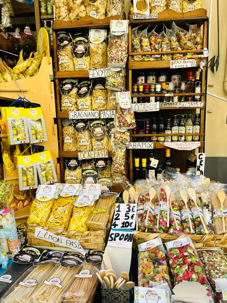 The first place we headed was to Corso Italia (https://www.sorrentoreview.com/corso-italia.html), the main street through Sorrento (it was about a 10 minute walk from the hotel). It was a shoppers dream! Literally everything and anything you would hope to get on your trip was available there. We ventured mostly off the main drag to the many narrow stalls of boutique after boutique. You could get everything from high-end clothing, to low-end clothing, to jewelry, postcards, prints, macaroni and spices, magnets, ornaments, Limoncello, and literally any other souvenir you could think of. I found that as I journeyed through the stalls that prices became a bit cheaper and shop keepers were willing to barter a bit, especially if you were paying with cash (so have lots of euros on you!)