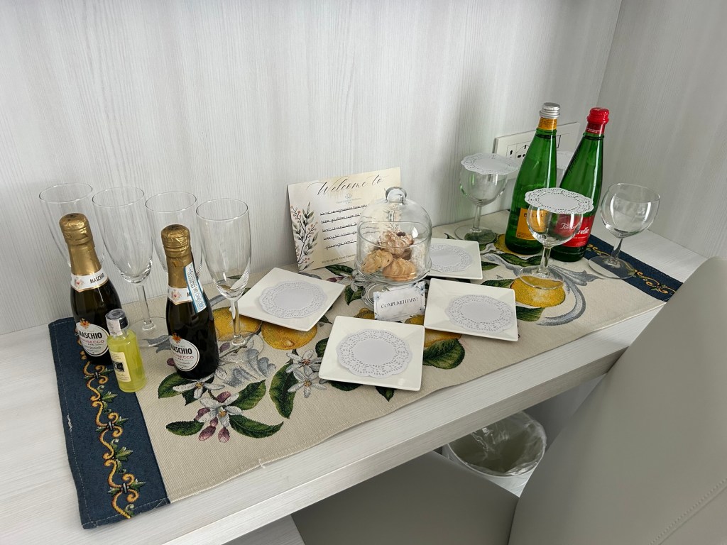 We were able to get into our rooms at around 2 o’clock. We decided on the family suite, as it was two separate rooms. One with a king bed, and the other, two full size beds. I was so impressed with our room when we walked in! The suite was big and bright and very clean! They had champagne, cookies, waters and candies waiting for us. For me, it’s the little touches.