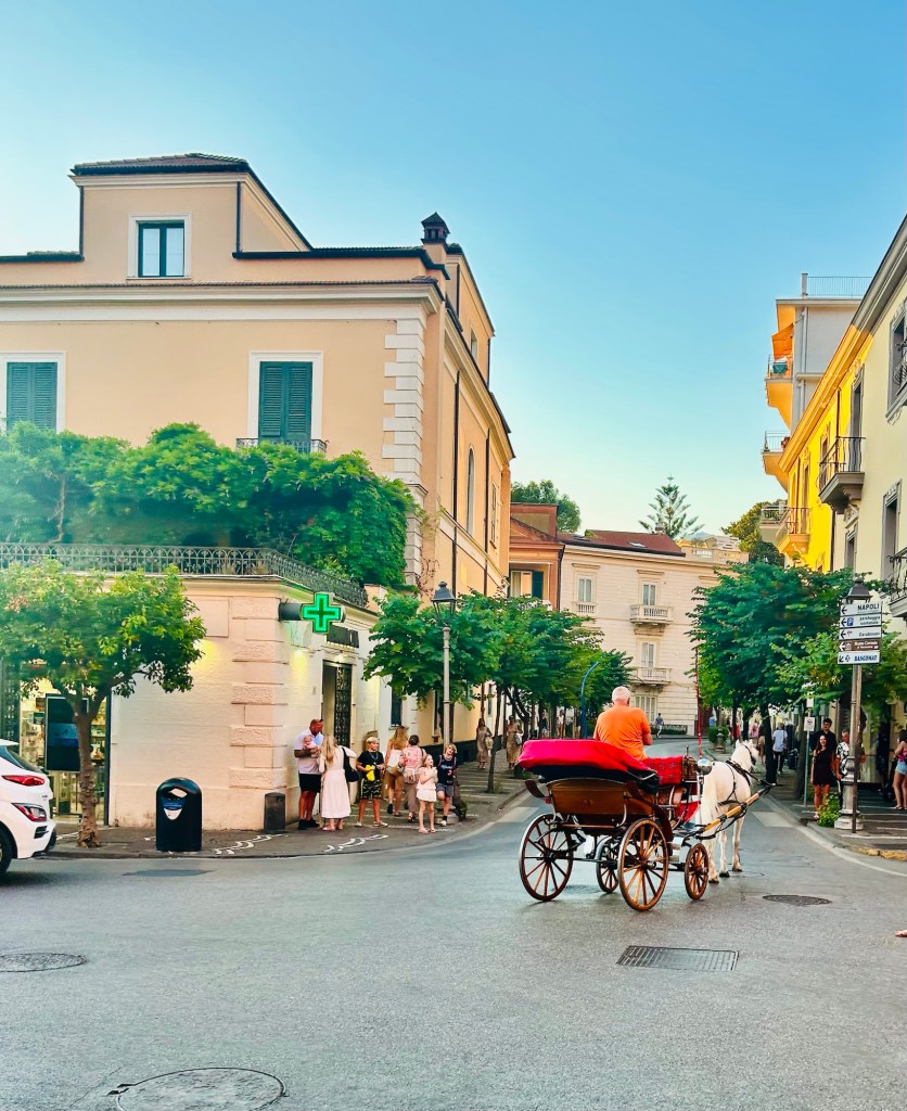 There are so many different ways that one can travel from towns in and around Amalfi to Sorrento. After a bunch of research on the best way to travel there, we decided to go with Positano Shuttle (https://www.positanoshuttle.com/). The cost was €33 per person which, after looking at alternate transportation methods, was a great price. We rented two vans and the gentleman showed up, dressed to the nines in black suits. They loaded all of our luggage (poor guys), and off we went. The vans were extremely clean, comfortable and air-conditioned. The ride to Sorrento was about 1 hour and 20 minutes. We decided to leave nice and early (7:30 am), so we could have the full day in Sorrento. We followed the Amalfi Coast highway much of the way, so it was a beautiful drive. When we arrived at Hotel Central Wellness (https://www.hotelcentralwellness.it/) we were able to leave our luggage with the concierge and go explore a bit.